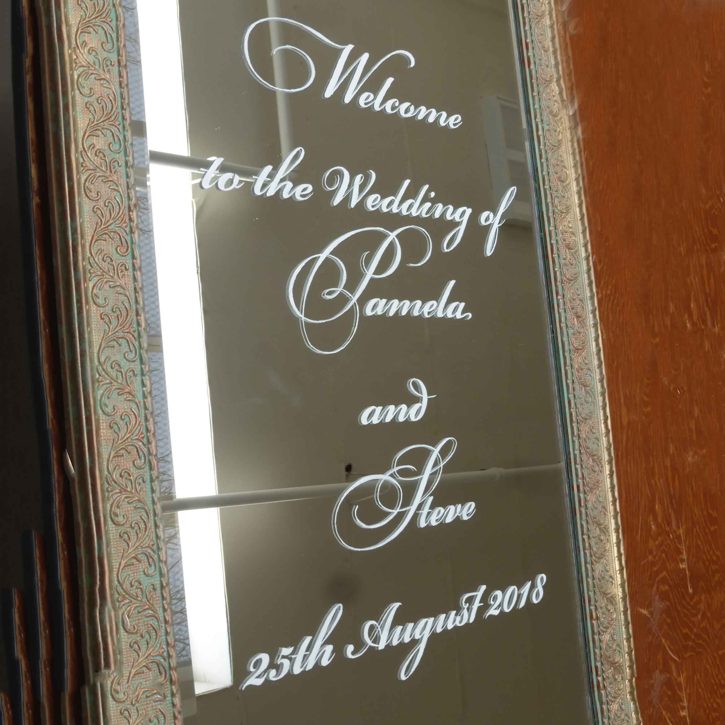 Calligraphy on mirror for Pamela and Steve’s wedding.